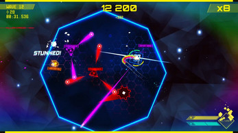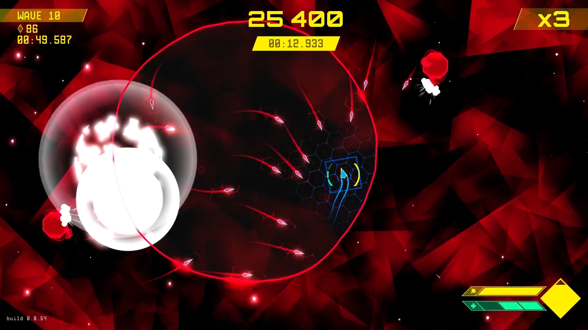 Hyperslice is a short arena game with roguelite elements. You unlock new upgrades and abilities outside your runs on top of 4 different ships with unique ultimates and different speed, health and damage characteristics.